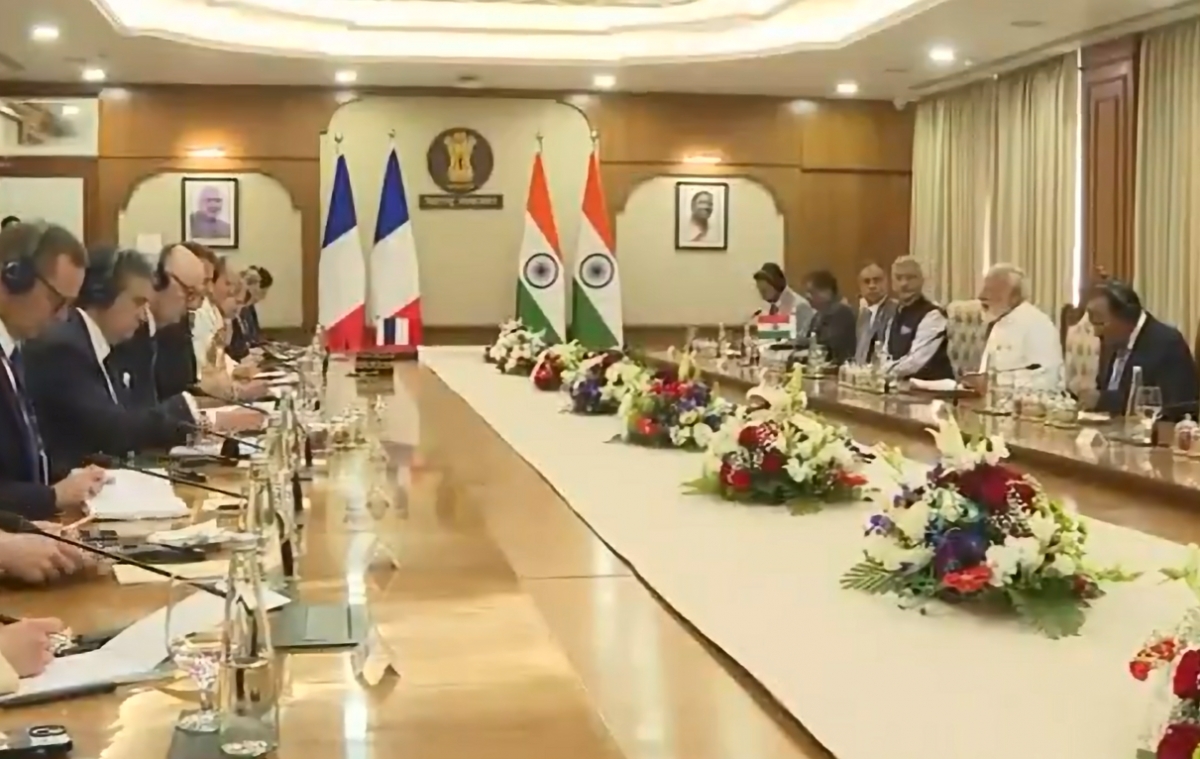 ಮುಂಬಯಿ : ಪ್ರಧಾನಿ ನರೇಂದ್ರ ಮೋದಿ ಗುರುವಾರ ಮುಂಬೈನ ಲೋಕ ಭವನದಲ್ಲಿ ಫ್ರೆಂಚ್ ಅಧ್ಯಕ್ಷ ಎಮ್ಯಾನುಯೆಲ್ ಮ್ಯಾಕ್ರನ್ ಅವರೊಂದಿಗೆ ನಿಯೋಗ ಮಟ್ಟದ ಮಾತುಕತೆ ನಡೆಸಿದರು, ಭಾರತ ಮತ್ತು ಫ್ರಾನ್ಸ್ ನಡುವಿನ ಕಾರ್ಯತಂತ್ರ, ಆರ್ಥಿಕ ಮತ್ತು ರಕ್ಷಣಾ ಸಹಕಾರವನ್ನು ಬಲಪಡಿಸುವತ್ತ ಗಮನಹರಿಸಿದರು.